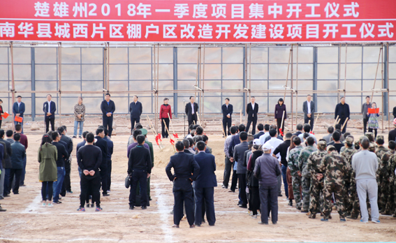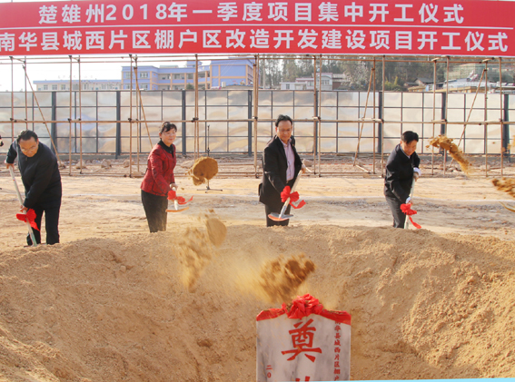 州委副书记、州人民政府州长迟中华,州委副书记彭志远,州政协主席杨静,以及州委、州人大、州政协领导,各县市政府主要领导,州级有关部门领导和南华县委副书记、县人民政府县长何文明,县委副书记杨梦婷,县人大常委会主任肖志,县政协主席叶忠华等州县领导参加开工仪式,并为县城西片区棚户区改造项目开工奠基培土。