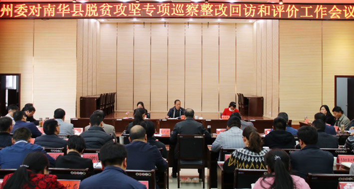 州委巡察整改回访和评价工作组组长韩明哲,南华县委书记李云升,县委副书记杨梦婷,县人大常委会主任肖志,县政协主席叶忠华等县领导参加会议。