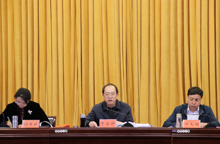 何文明主持会议,并就贯彻落实好会议精神要求,全县各级各部门要以习近平新时代中国特色社会主义思想为指引,深入学习贯彻党的十九大精神,咬定目标、苦干实干、久久为功,扎扎实实把乡村振兴战略推向前进,坚决打赢脱贫攻坚这场新时代必须打赢的第一场硬战,不断开创新时代全县“三农”工作新局面。