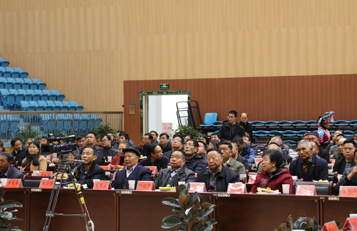 何文明主持会议,与会还观看了南华县在建州60周年发展综述专题片《沧桑巨变 成就辉煌》