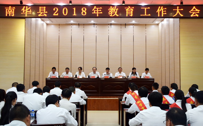 李云升在会上作了题为《攻坚克难 比学赶超 以改革精神全力写好南华教育“奋进之笔”》的重要讲话。李云升指出,教育是公益事业,也是民心工程;教育是责任,更是良知。近年来,在各级党委、政府的关心支持下,县委、县政府牢固树立教育为本的理念,紧紧围绕“公平优质”教育目标,始终把教育摆在优先发展的战略地位,持续加强领导、加大投入,不断深化改革、强化管理,努力激发活力、提升质量,全县教育资源不断优化,基础设施不断改善,管理机制不断健全,办学质量不断提高,有力促进了全县教育均衡发展、科学发展、内涵发展。教育系统的党建工作更加坚实、办学条件大为改善、教育发展获得感普遍增强、教师队伍建设不断加强、教育改革深入推进,全县教育事业发展呈现出蓬勃向上的良好局面。截至目前,我县在改善办学条件方面累计投入资金8.9亿元,改扩建义务教育学校165所,新建校舍面积7.9万平方米。2017至2018学年,城乡、校际间交流轮岗校长6名、教师178名,从2017年1月起,按照乡村学校的生活和工作条件,分四类地区,乡村教师每人每月发放220元至820元不等的乡村教师生活补助,有效调动了乡村教师的工作积极性。