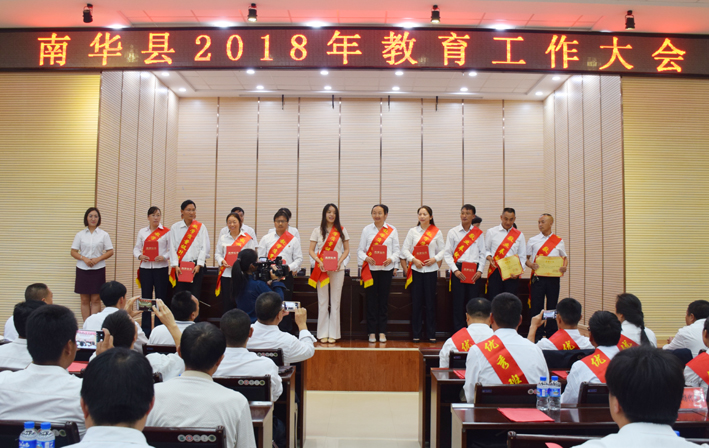 县委书记李云升,县委副书记、县人民政府县长何文明,县委副书记杨梦婷,县人大常委会主任肖志,县政协主席叶忠华,县人大常委会副主任朱必兰,县人民政府副县长彭元勇,县政协副主席黄淑珍,各乡镇党委书记、县级各部门、省州驻南华单位主要领导,县教育局股所以上干部,全县中小学、幼儿园校(园)长及受表扬的教师代表共计160余人参加了会议。