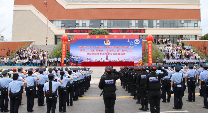 在第32个“6.26”国际禁毒日,为全面展示禁毒成果,加大毒品预防教育和禁毒宣传工作力度,增强全民禁毒意识和抵制毒品能力,构建和谐平安南华。6月26日上午,我县举行以“健康人生,绿色无毒”为主题的2019年“6.26”国际禁毒日宣传活动启动仪式。