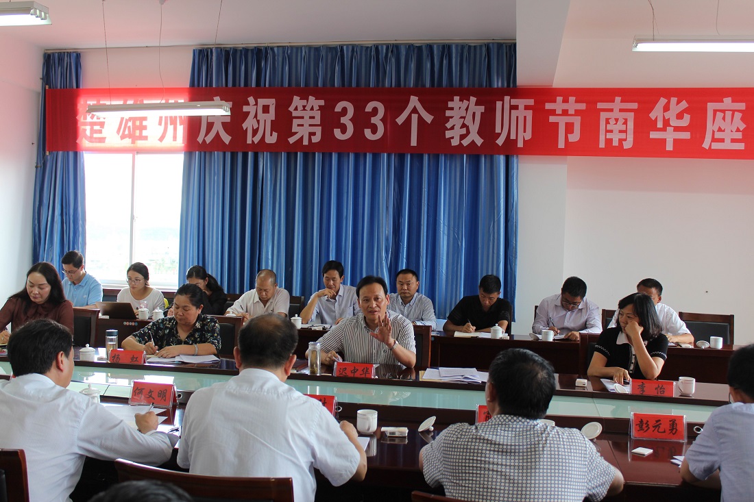 迟中华充分肯定了近年来南华教育的发展与进步,对两所学校在义务教育均衡发展、提高教育教学质量方面采取的措施表示赞许。迟中华强调,要高度重视,全面落实“优先发展教育”战略;要着眼全局,全力办好人民满意的教育;要潜心育人,争做人民满意的教师;要协同联动,着力营造尊师重教的良好氛围。希望广大教师和教育工作者切实担负起为国育才、为民教子的历史重任,把为人师表作为不懈追求的优良品德,把终身学习作为人生进步的重要阶梯,静心教书,潜心育人,争做人民满意的教师,努力成为学生健康成长的指导者和引路人。