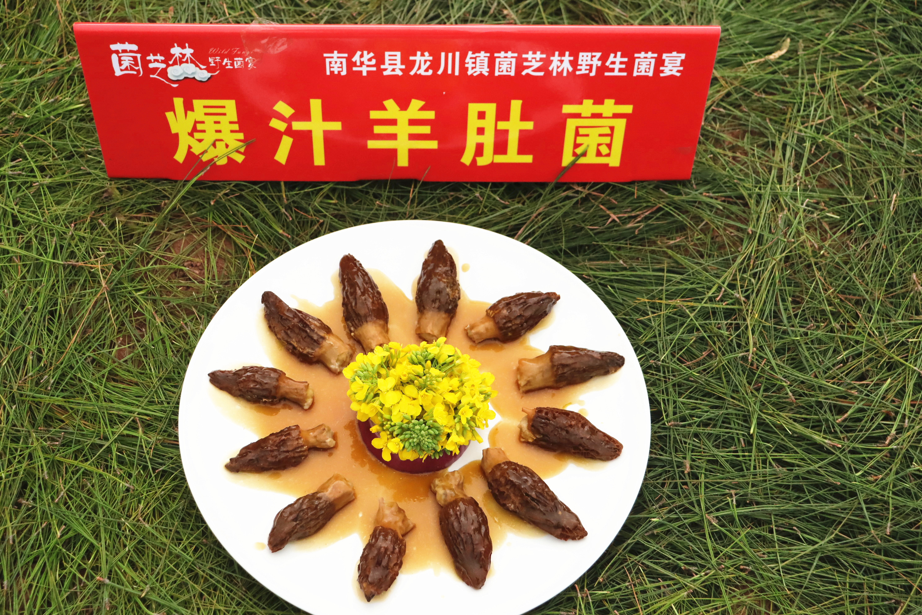 春光明媚,花事正好。在云南省楚雄彝族自治州南华县龙川油菜花节“春日菌鲜花香”美食制作推广现场,争相竞放的油菜花顶着金黄的色彩,伴着微醺的春风,像云锦般洒向热闹的人间。花丛间,随着袅袅升起的炊烟,一道道映衬着春日芳华的佳肴缓缓盛开在花海中:春日羊肚菌、二月刺白花、菌香养生盅、油菜花蛋饼……鲜美的菌香搭配醉人的花氲,烟火和芳菲的骤然碰撞,掀开了春日菌鲜花香的舌尖盛宴。