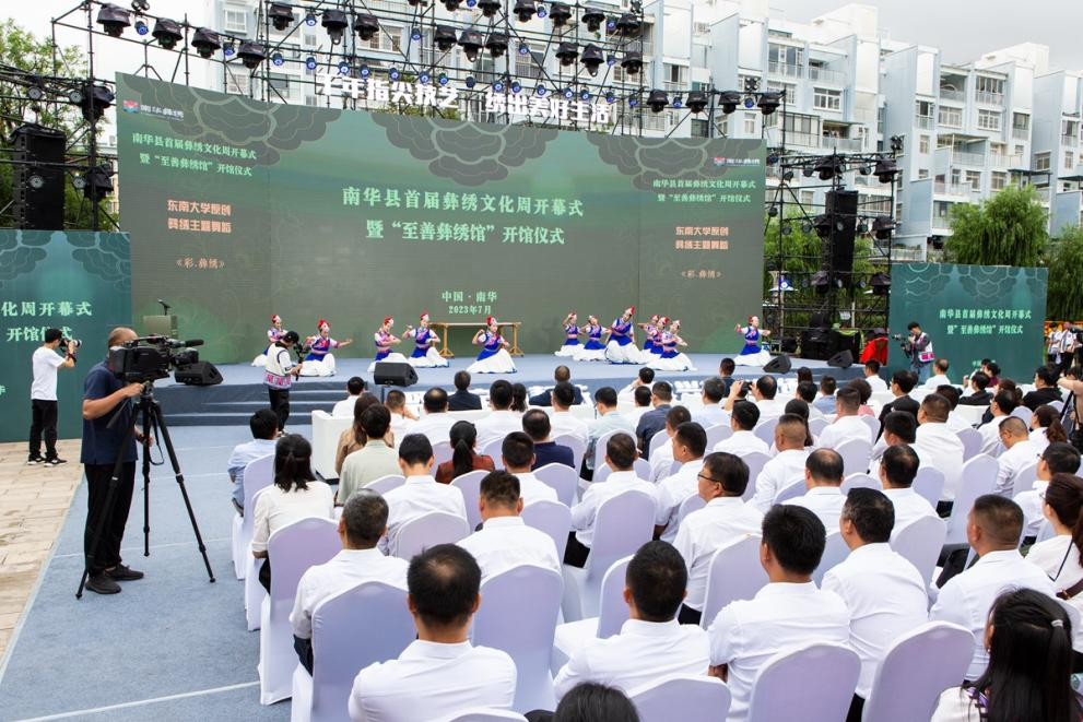 在东南大学的帮扶和指导下,南华县通过政府引导加资源整合的手段,组建由东南大学挂职干部任组长的彝绣专班,出台支持文化事业产业的政策体系,推进南华彝绣生产经营小散弱向规模化、专业化、组织化发展,聚力打造高端化、时尚化、国际化的彝绣品牌,推动南华彝绣走出大山、走向全国、走向世界,南华将彝绣从“指尖技艺”转化为“指尖经济”,彝绣产业得到迅速发展,逐步形成“区域有园区、乡乡有车间、村村有绣坊”的发展格局。2022年,南华县彝绣产业销售额3489万元,同比增长64%,带动了包括109名残疾人在内的近两千名绣娘就业增收。