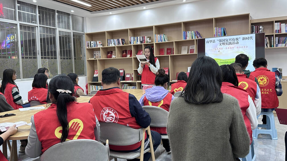 最是书香能致远,唯有读书润心田。为大力推进全民阅读,营造书香氛围,丰富群众精神文化生活。近日,南华县新时代文明实践中心围绕“强国复兴有我”主题开展了“全民阅读·书香南华”读书分享活动。通过读书分享引导干部群众在阅读中获取知识、汲取力量,带动干部群众重拾书本,提升自己,开阔眼界,充实精神世界,进一步营造爱读书、读好书、善读书的新风尚。
