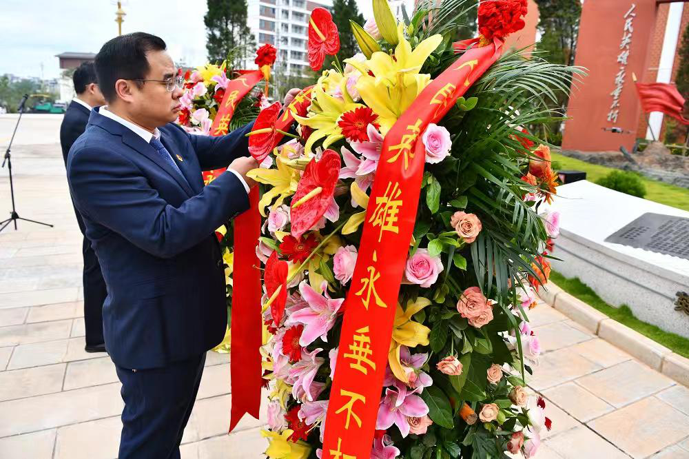县委常委,县人大常委会、县人民政府、县政协领导班子成员,县人武部部长,县人民法院院长,县检察院检察长,县级各部门、省州驻南华单位主要负责人等参加敬献花篮仪式。