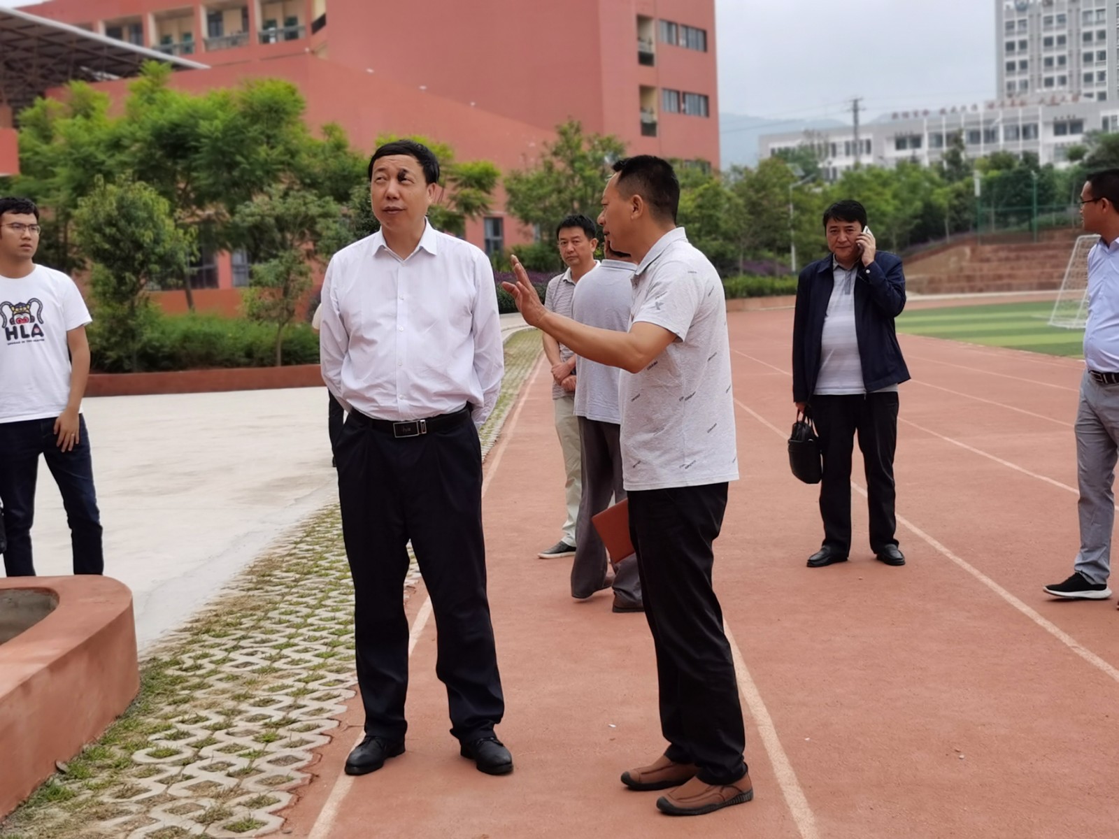 何文明县长对我校新教学楼周围的绿化美化进行指导。