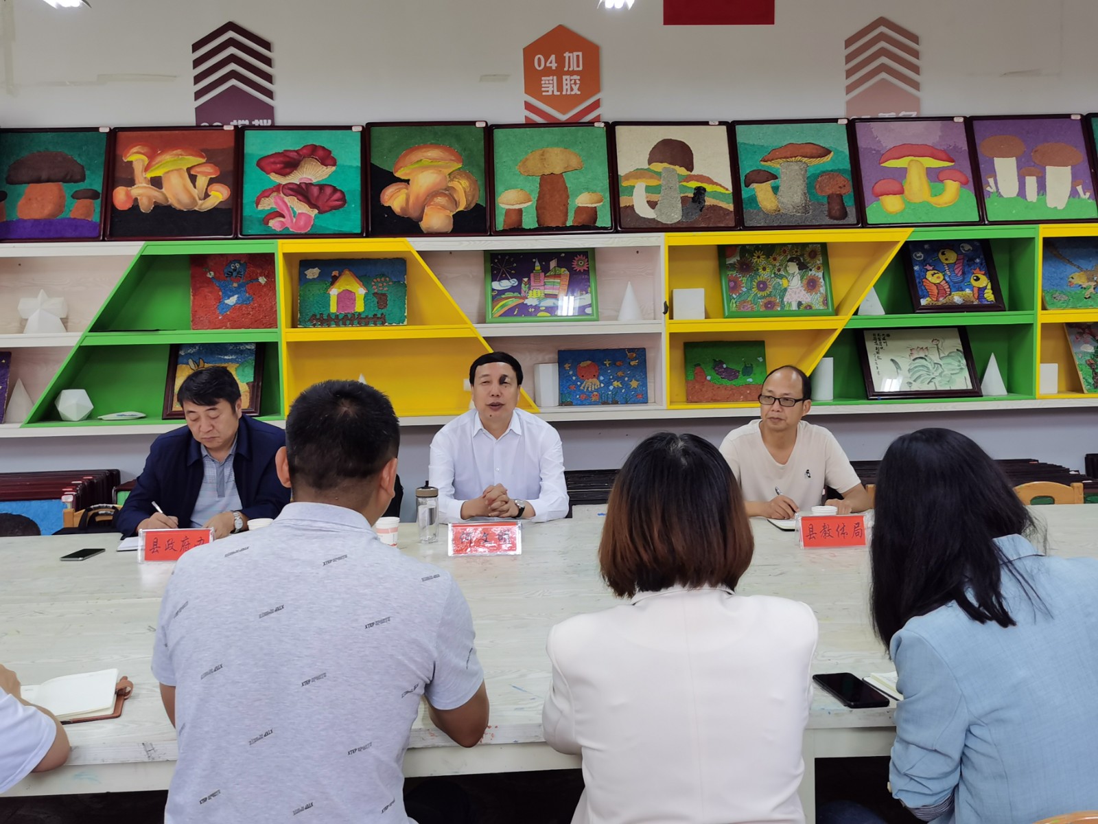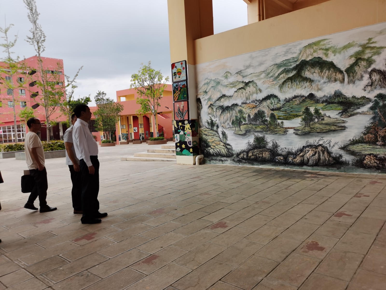 何文明县长对我校美术老师亲笔描绘南华十八景,既为国家节约资金,又美化了校园的做法表示赞赏。