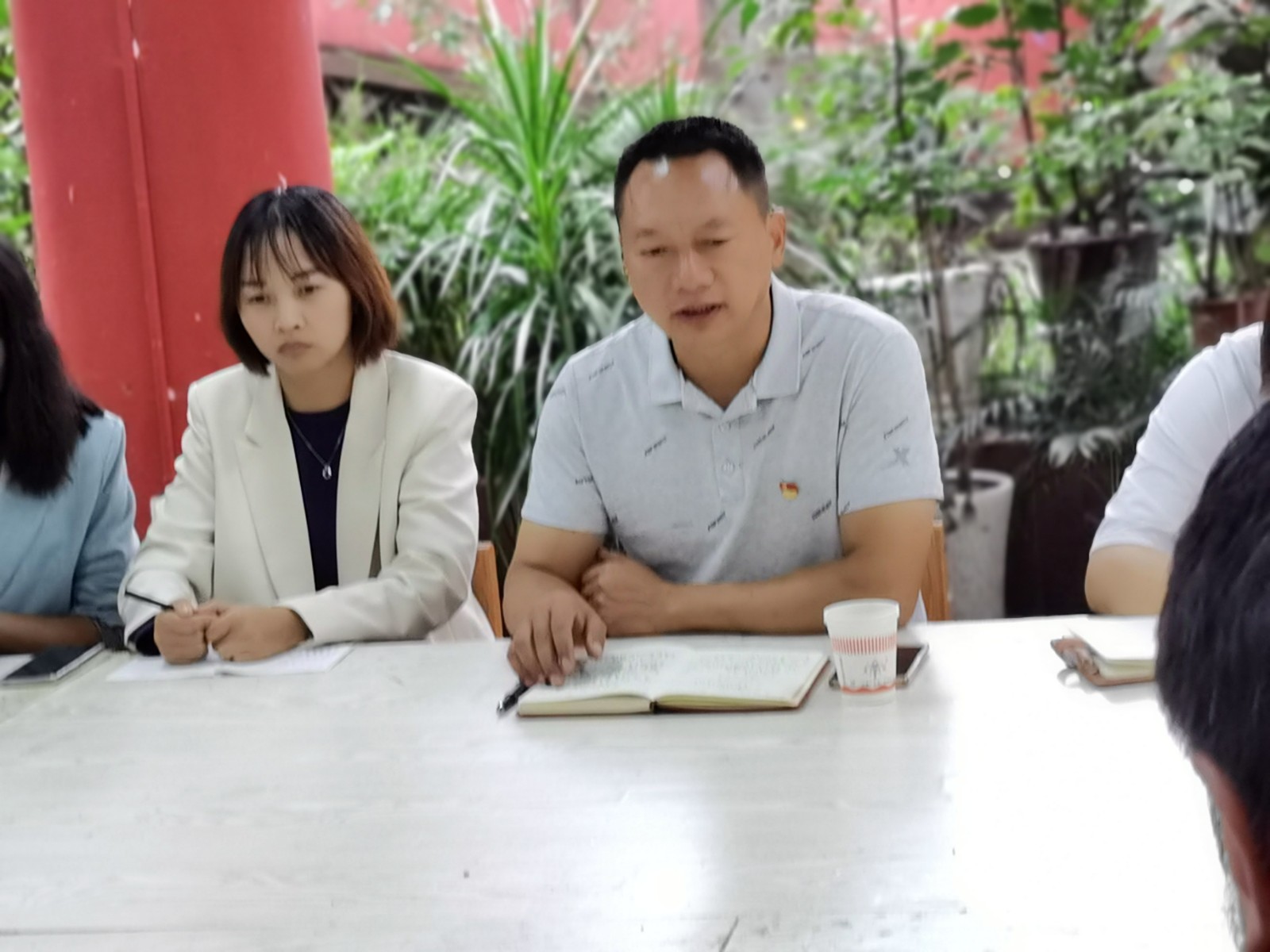 何文明县长听取一线教师的建议。