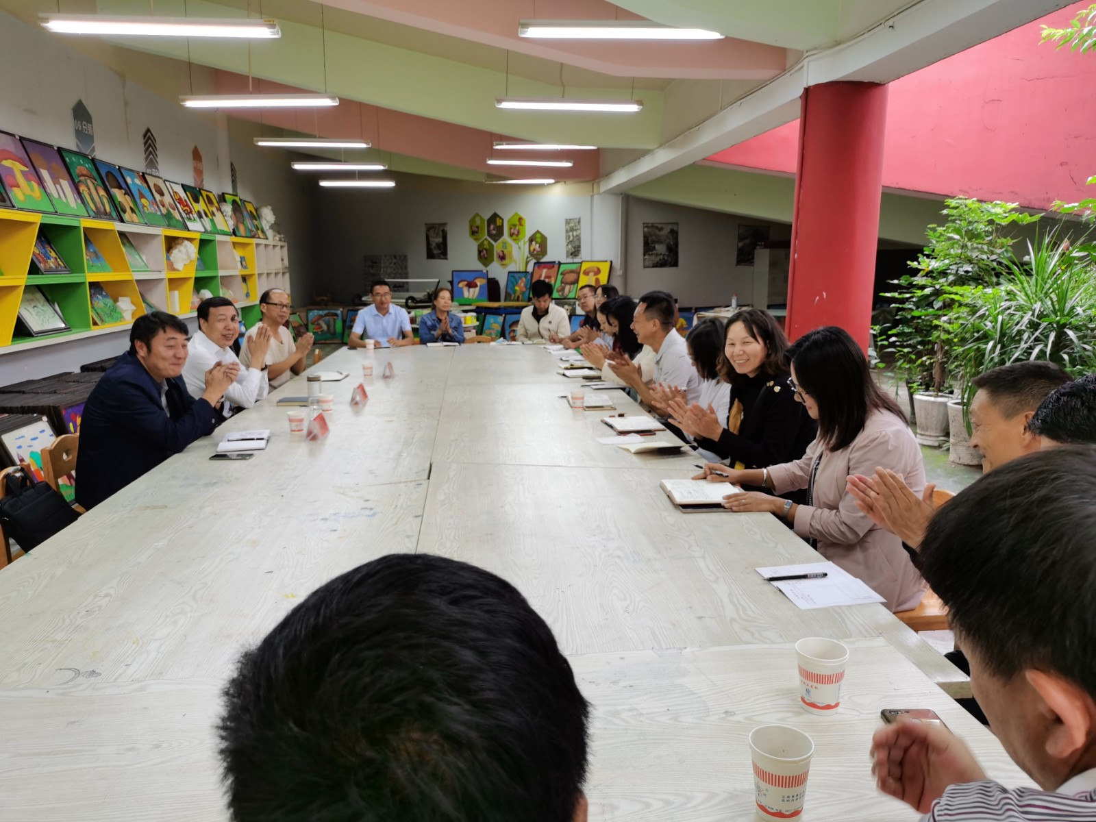 上午9:00,何文明县长一行在南华县思源实验学校纸浆画工作室召开教师节慰问座谈会。何文明县长首先作了教师节慰问发言,带来了县委、县人民政府的问候和关心;随后,就这几年南华县教育发展的现状,何文明县长征询了南华县思源实验学校党支部书记何开明校长的建议,听取了教师代表的发言,发言中大家都表示一定要为南华县的教育尽一份历史责任,为南华县的教育事业共谋发展、勇担重任。最后,何文明县长向南华县思源实验学校教师发放慰问金,并给予南华县思源实验学校校舍维修的资金支持。