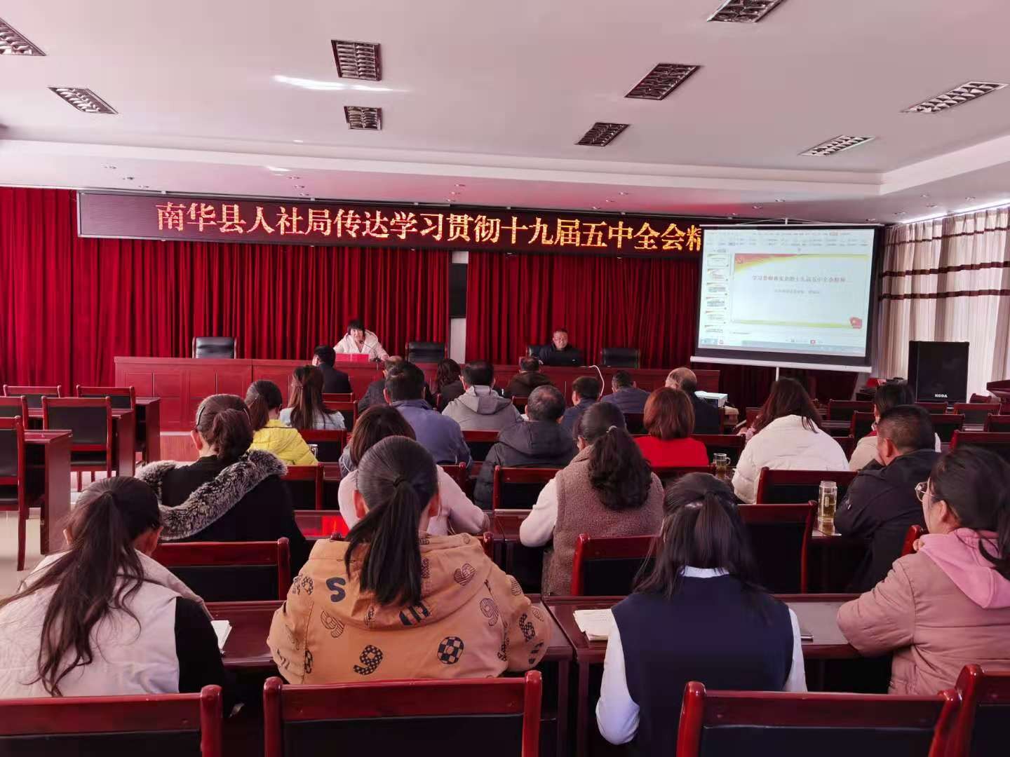 近日,南华县人社局党组书记、局长张问高主持召开理论学习中心组2020年第八次集中学习会议,专题传达学习习近平总书记在党的十九届五中全会上的重要讲话和全会精神。为确保学习取得实效,会议邀请县委党校高级讲师罗成亮就如何学习贯彻好党的十九届五中全会精神作专题辅导。全局57名干部职工参加专题辅导。