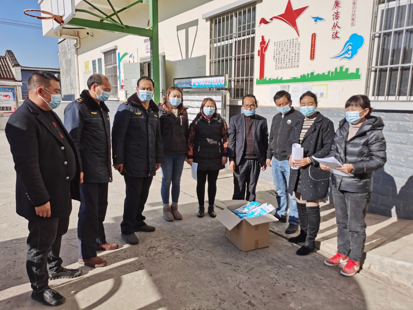 城管局党支部还给海子山社区党总支82名党员发放口罩820个、疫情防控知识手册120份。
