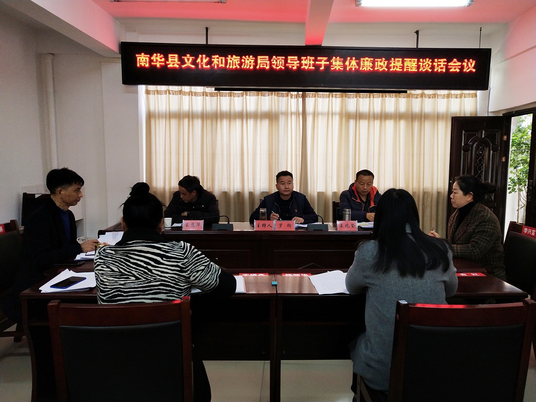 为进一步压实管党治党政治责任和工作责任,推进全面从严治党向纵深发展,1月29日,县纪委县监委派驻县委宣传部纪检组组长王兆登同志对县文化和旅游局领导班子成员开展集体廉政提醒谈话。
