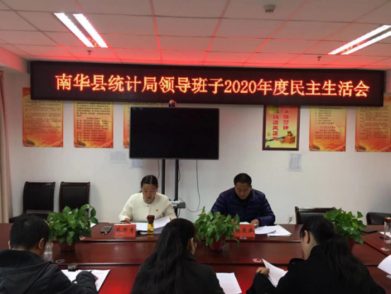 按照县委的统一要求,1月29日,南华县统计局召开2020年度领导干部民主生活会。局领导班子中的党员干部出席会议,领导班子中的非党干部、办公室相关人员列席会议,县委第十一督导组张庆业同志到会指导并作了点评。