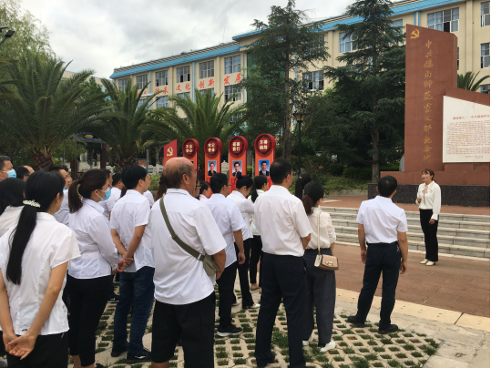 在中共镇南师范党支部纪念碑前,全局干部职工聆听了中共镇南师范党支部光辉历史,共同追忆红色历史,深切缅怀革命先烈,并重温入党誓词,再忆当年入党时的庄严承诺和坚定决心。