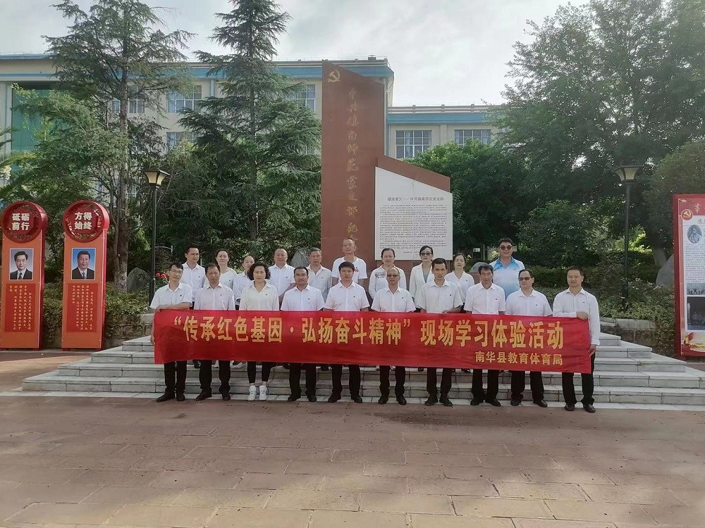2021年6月15日,南华县教育体育局组织局机关全体党员到鹦鹉山革命老区县红色文化广场和南华一中镇南师范党支部纪念碑广场开展“传承红色基因·弘扬奋斗精神”现场学习体验活动,活动全程由县教育体育局机关党支部书记吕剑锋同志主持。