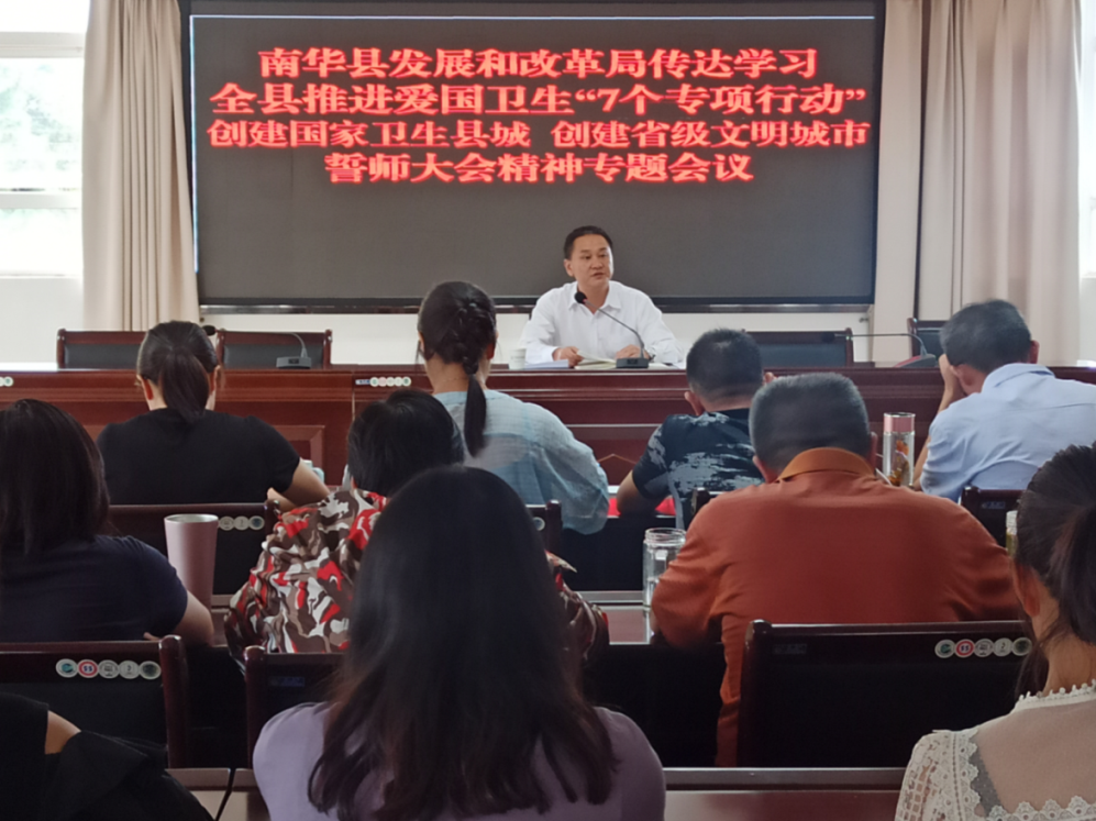 7月5日,县发展和改革局召开干部职工会议,专题传达学习全县推进爱国卫生“7个专项行动”、创建国家卫生城市、创建省级文明城市誓师大会精神。
