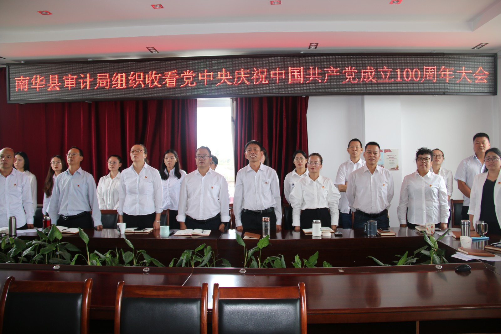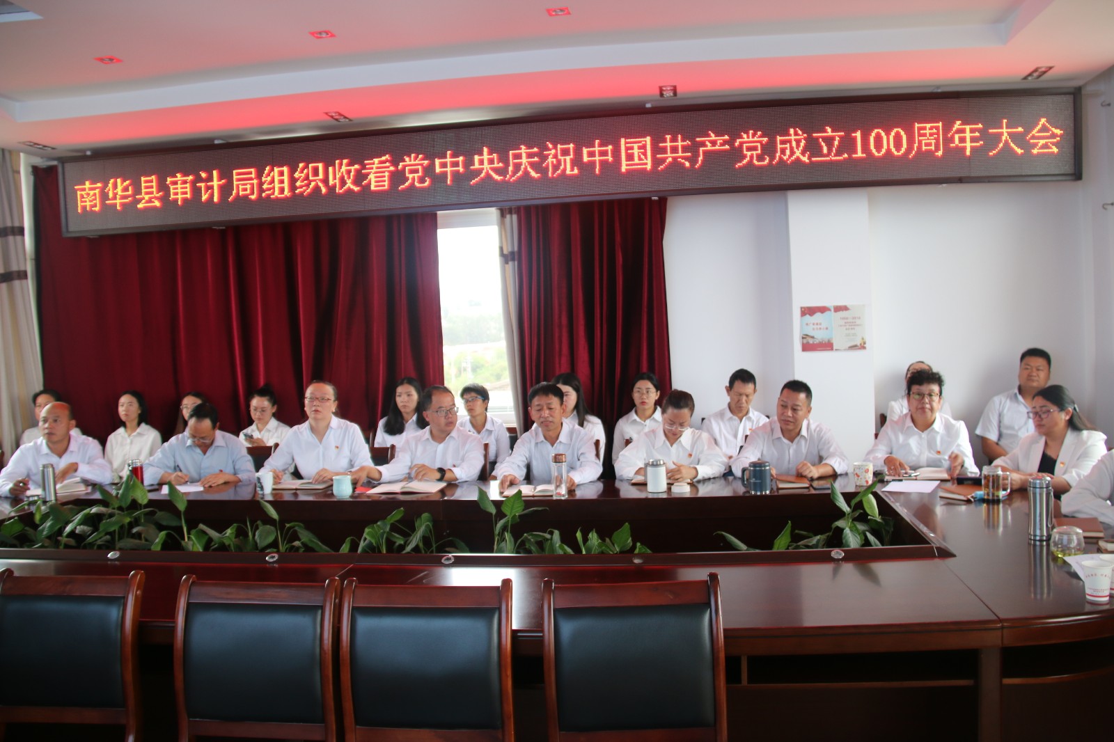 7月1日上午,庆祝中国共产党成立100周年大会在北京天安门广场隆重举行。中共中央总书记、国家主席、中央军委主席习近平同志发表重要讲话。南华县审计局组织局机关全体干部职工在5楼小会议室集中观看大会现场直播盛况。