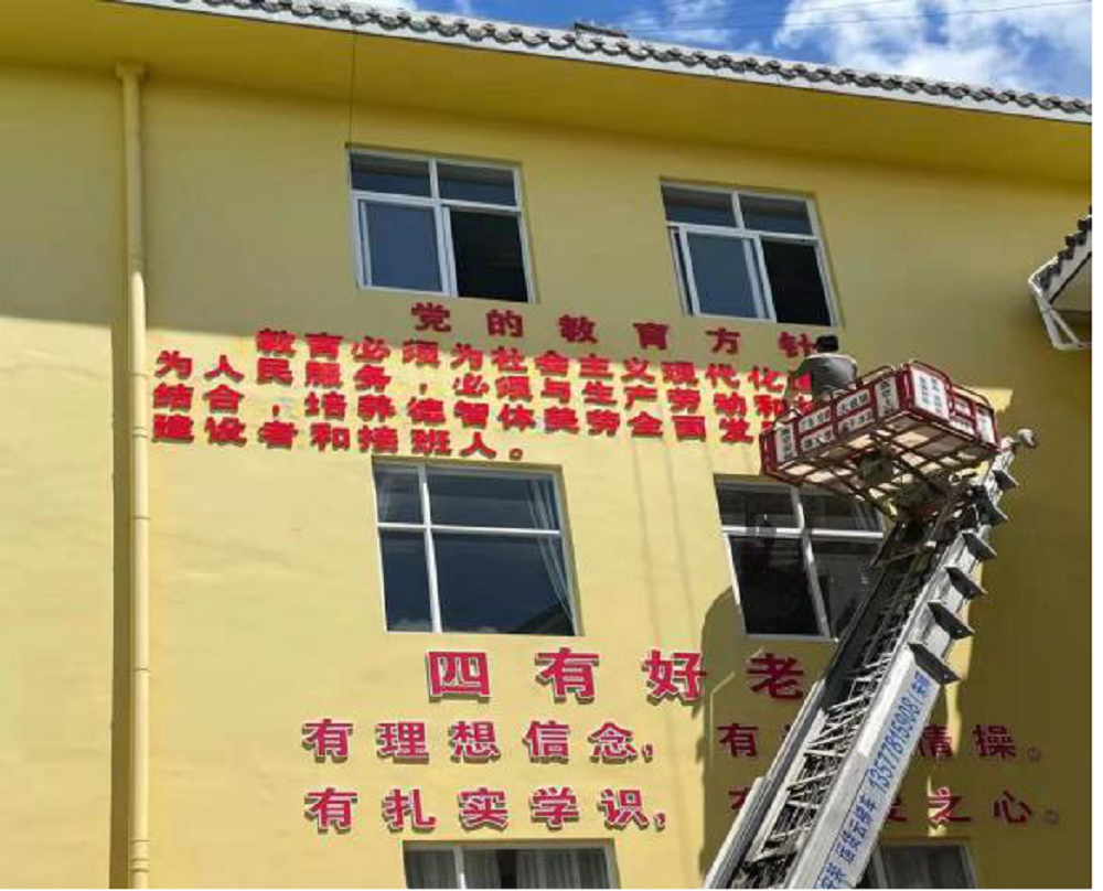6月8日下午,党支部书记和校长深入到每个校点,将《中共云南省委教育工委 云南省教育厅关于深入学习贯彻党的教育方针的通知》传达到每个村校点,落实党的教育方针室外上墙展示具体位置。