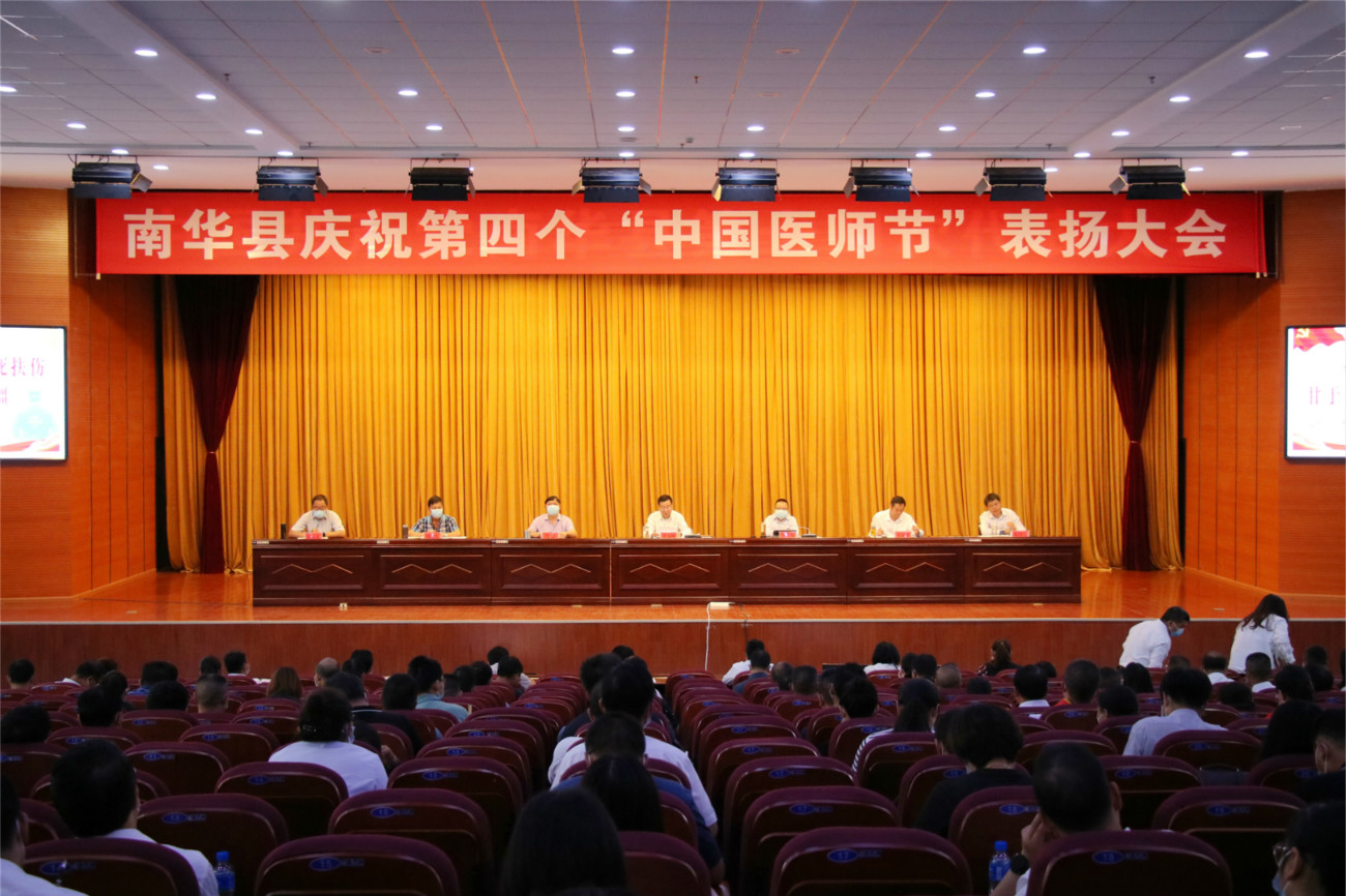 为大力弘扬医务工作者“敬佑生命、救死扶伤、甘于奉献、大爱无疆”精神,表扬全县涌现出的卫生健康工作先进集体和先进个人,,在全社会营造尊医重卫的良好氛围,激励广大医务工作者为打赢疫情防控攻坚战、建设健康南华、增进人民健康福祉作出更大贡献。8月19日上午,南华县在公务中心三楼礼堂召开庆祝第四个“中国医师节”表扬大会。
