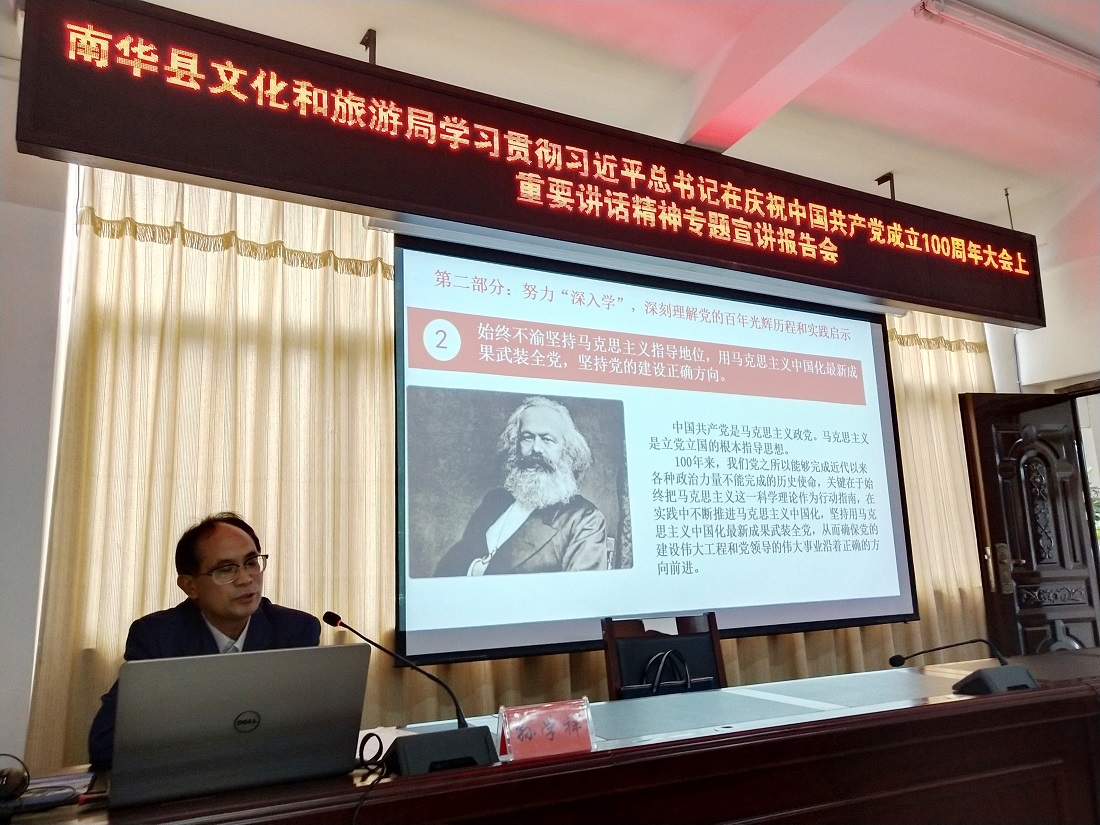 8月23日,南华县文化和旅游局召开学习贯彻习近平总书记在庆祝中国共产党成立100周年大会上重要讲话精神专题宣讲报告会。