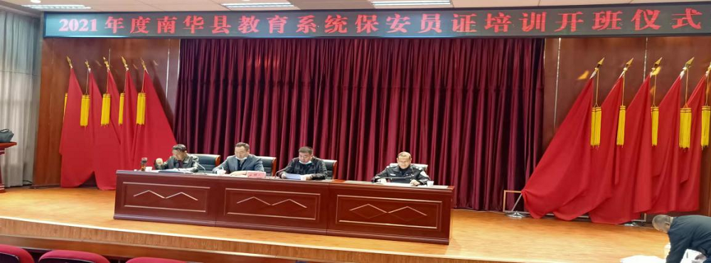 为全面贯彻落实国家、省、州各级关于加强中小学幼儿园人防物防技防建设决策部署和规划目标,确保在收官之年圆满完成校园“三防”建设4个100%(即一是校园专职保安员配备率要达到100%;二是中小学封闭化管理和城市幼儿园封闭化管理达到100%;三是城镇幼儿园以上学校一键式紧急报警、视频监控系统达标率达到100%;四是已安装一键式紧急报警、视频监控系统的中小学幼儿园要实现与属地公安机关、教育体育部门联网,城市“护学岗”设置率达100%)达标任务,切实提升全县中小学、幼儿园安全防范水平,保障广大学生、儿童和教职员工的生命财产安全,维护良好的校园教育教学环境和治安秩序,2021年10月20至22日,南华县教育体育局委托楚雄州保安职业培训学校对南华县教育体育系统90余名保安员进行为期3天的专题培训,培训期间,参培学员积极主动,用心领会学习,培训效果显著,达到了预期的目的。(南华县教育体育局 高应贵)