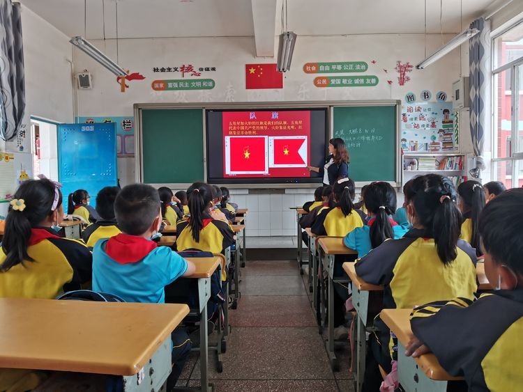 建队日当天,各中队在辅导员的带领下,学习少先队标志礼仪,开展“请党放心 强国有我”主题中队会,组织一年级学生学习少先队基本知识和标志礼仪,为入队做好准备。