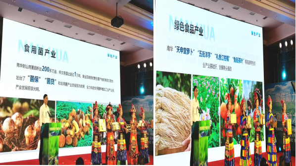 同时,陈如军重点推介了南华县食用菌、绿色食品、绿色制造、绿色能源、文化旅游五大绿色产业。在食用菌产业方面,他介绍:南华封山育菌面积达200多万亩,年交易量超过1万吨,是全国重要的野生菌产地和集散交易地。今年以来,南华出台了“菌保”“菌贷”和食用菌产业发展系列政策,全力构建食用菌种植加工全产业链,产业发展前景光明。在绿色制造产业方面,他介绍:南华县绿色制造园区、野生菌加工产业园区、绿色食品加工园区有可用土地近2000亩,生产要素一应俱全。此外,陈如军还指出,南华“天申堂萝卜”“五街洋芋”“礼舍江柑橘”“兔街茶叶”等高原特色农业产业基础好、发展势头强劲;南华丰姿多态的凤山湖、“镇南八景”之一——鹦鹉来青的鹦鹉山、天然自流的黑泥温泉,是优质的旅游资源;南华有可开发利用光伏土地资源9.5万亩、风电规划装机容量60万千瓦以上,同时还是滇西最大的产煤县,绿色煤炭资源储量达6800多万吨,开发前景非常广阔。