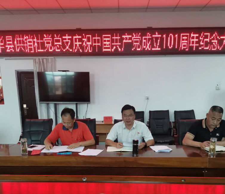 召开党员庆祝大会。召集县供销社机关党支部、天禾农资党支部、华鑫购物中心党支部、机关离退休党支部全体党员在县供销社四楼召开庆祝中国共产党成立101周年庆祝大会。会上,重温入党誓词,激励全体党员不忘初心、牢记使命,围绕广大党员群众普遍关注的热点难点疑点问题进行释疑解惑,提升队伍整体素质,激发干事创业热情。