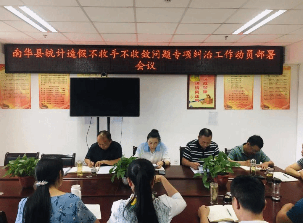 7月12日下午,南华县统计局召开统计造假不收手不收敛专项纠治工作动员部署会议,传达学习国家和省州统计造假不收手不收敛问题专项纠治工作动员部署视频会议和州政府召开的全州专项纠治工作会议精神,客观分析当前依法统计工作面临的严峻形势,安排我县贯彻实施任务,局机关全体干部职工参加会议。