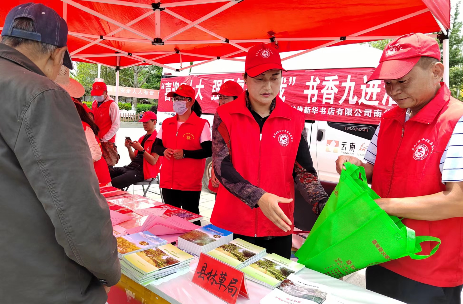 在现场,县林草局通过横幅、展板、挂画、宣传页、现场咨询等多种方式积极开展安全生产宣传活动,共发放了《主要野生菌保育促繁和规范采收技术》《楚雄州核桃集约化经营技术》《核桃栽培管理技术》《楚雄州核桃提质增效技术》等宣传资料1000余份,向群众讲解林草产业方面科技知识,增强广大群众科学生产生活意识,为推进科技强国建设营造良好氛围。