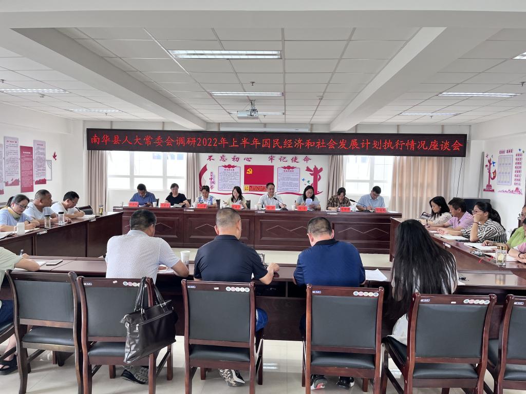 7月17日,县人大常委会副主任杨洪带领调研组一行到县统计局召开调研座谈会议,专题调研南华县2022年上半年国民经济和社会发展计划执行情况。