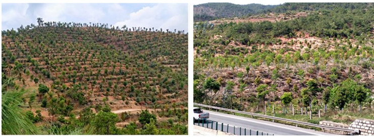 南华县认真贯彻落实省州高速公路路域环境绿化美化工作部署,本着因地制宜、适地适树的原则,在保留原有森林资源的基础上,实施林地绿化或景观改造。工作中严把规划设计、苗木质量、施工管理、抚育管护等关键环节,全面完成昆丽高速公路南华段路域环境绿化美化项目建设,在公路产权范围外两侧100m范围路域完成绿色廊道工程建设3811.1亩,实施造林小班225个,种植米径8cm以上云南樟、球花石楠、滇朴、栾树、三角枫、蓝花楹、垂柳等绿化苗木17万多株,目前苗木长势良好,打造了一条四季常绿、特点鲜明的绿色景观廊道,充分展示了生态文明建设成果。