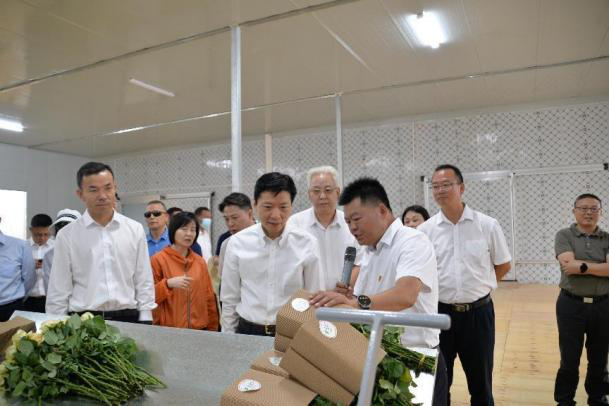在河硐村沪滇协作现代特色农业种植产业园项目,代表团先后察看了玫瑰花冷链包装车间、标准温室大棚等。