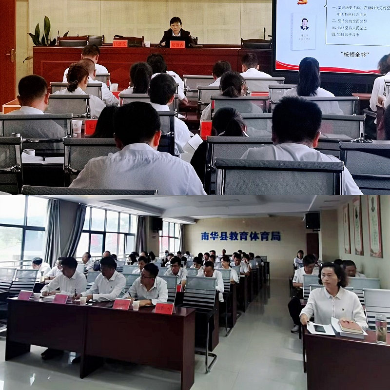 为进一步增强教育体育系统干部教师队伍的政治素养和理论水平,持续推动学习贯彻习近平新时代中国特色社会主义思想和习近平总书记考察云南重要讲话精神走实走深,9月2日上午,南华县教育体育系统开展《习近平谈治国理政》第四卷宣讲报告会,报告会邀请县委党校高级讲师夏银香作专题宣讲。县教育工委、县教育体育局党政班子成员,城区学校党总支(支部)书记、校(园)长、局机关全体干部职工共计70余人参加会议。