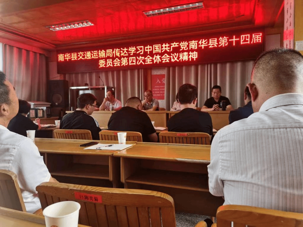 近日,县交通运输局召开专题会议,传达学习中国共产党南华县第十四届委员会第四次全体会议精神。局党组主要领导主持会议,局属股室段所、县运政管理所全体工作人员和楚交集团南华分公司班子共49人参加会议。