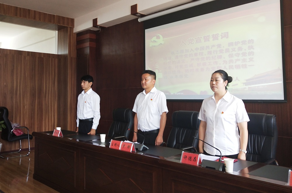 会议在庄严的国歌声中拉开帷幕,全体党员面对庄严的党旗重温了入党誓词。