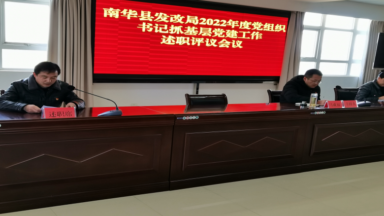 1月30日,南华县发改局召开2022年度党组织书记抓基层党建工作述职评议会议,回顾检视2022年基层党建工作开展情况,安排部署2023年基层党建工作,压紧压实局各党支部书记抓基层党建工作责任,为全力拼经济、拼发展、落实好“三个大抓”、优化营商环境提供坚强组织保障。