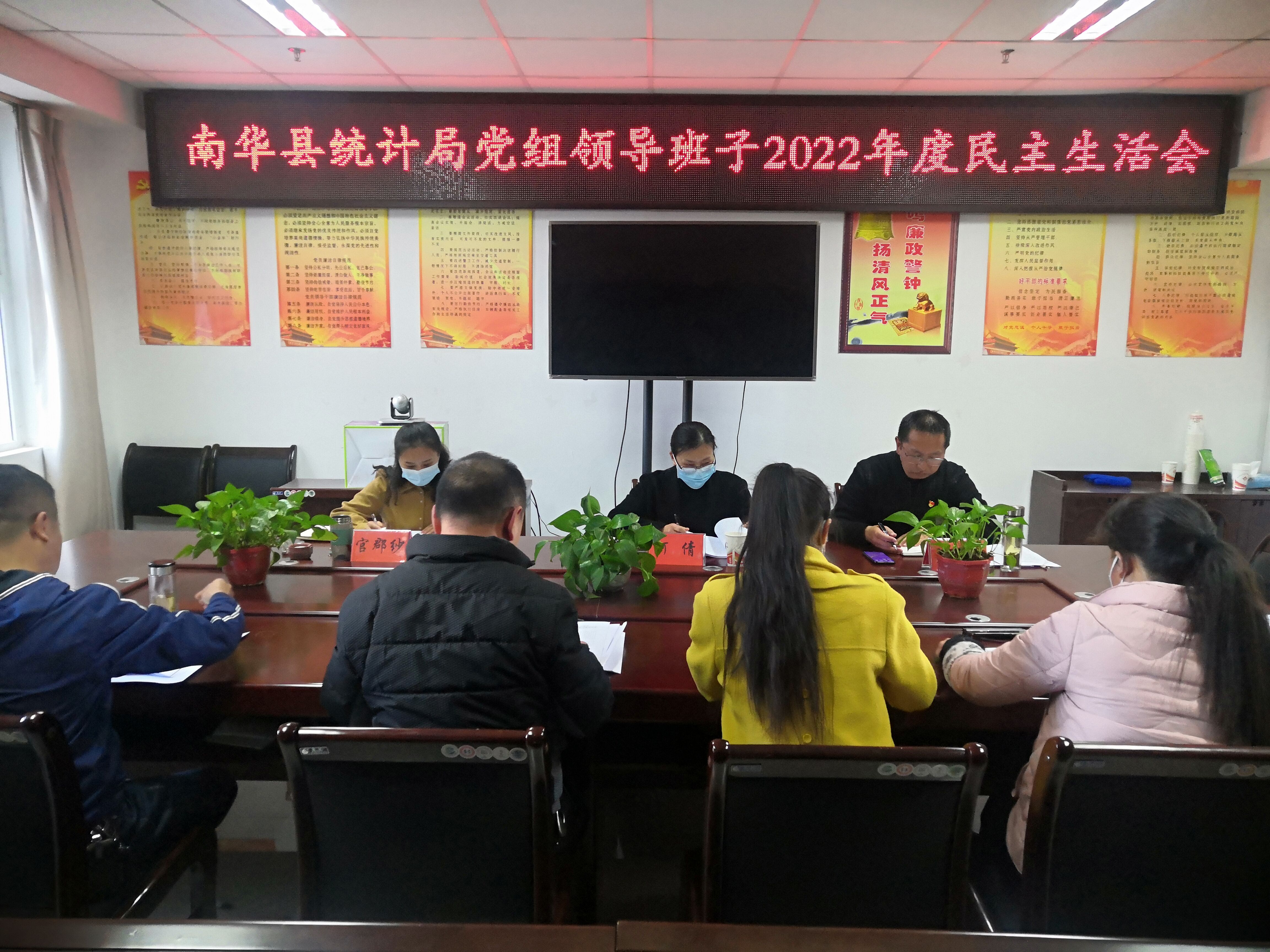 按照县委统一部署要求,2月9日下午南华县统计局党组召开2022年度民主生活会。县委第二指导组副组长何倩同志,组员张国光及官郡纱同志到会指导。局党组书记戴必新主持会议,党组班子成员、非党领导班子成员及负责党务工作的相关人员参加会议。