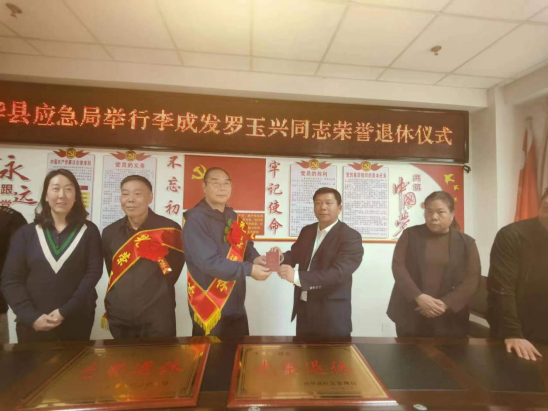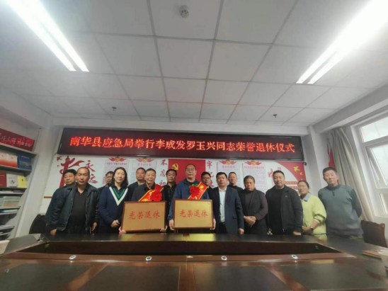 为表达对退休干部的深切敬意,增强退休干部的归属感、荣誉感和幸福感,激励在职在岗同志勇立潮头、接续奋斗。阳春三月,春暖花开。在这温暖的季节里,在这喜悦的日子里,3月17日下午,南华县应急管理局以最真挚的情谊为李成发、罗玉兴两位退休干部举行荣退仪式。