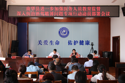 为深入推进全面从严治党,深化中央八项规定及其省州县实施细则精神在卫生健康领域落地见效,进一步强化对医务人员的监督管理,盯紧医务人员酒驾赌博等严重影响系统形象的作风问题,引导全县医务人员心有所畏、行有所止,自觉远离酒局牌局,培养良好健康情趣,维护行业系统良好形象。2023年4月10日,南华县卫生健康局召开进一步加强医务人员教育监督深入纠治酒驾赌博问题专项行动动员部署会议。