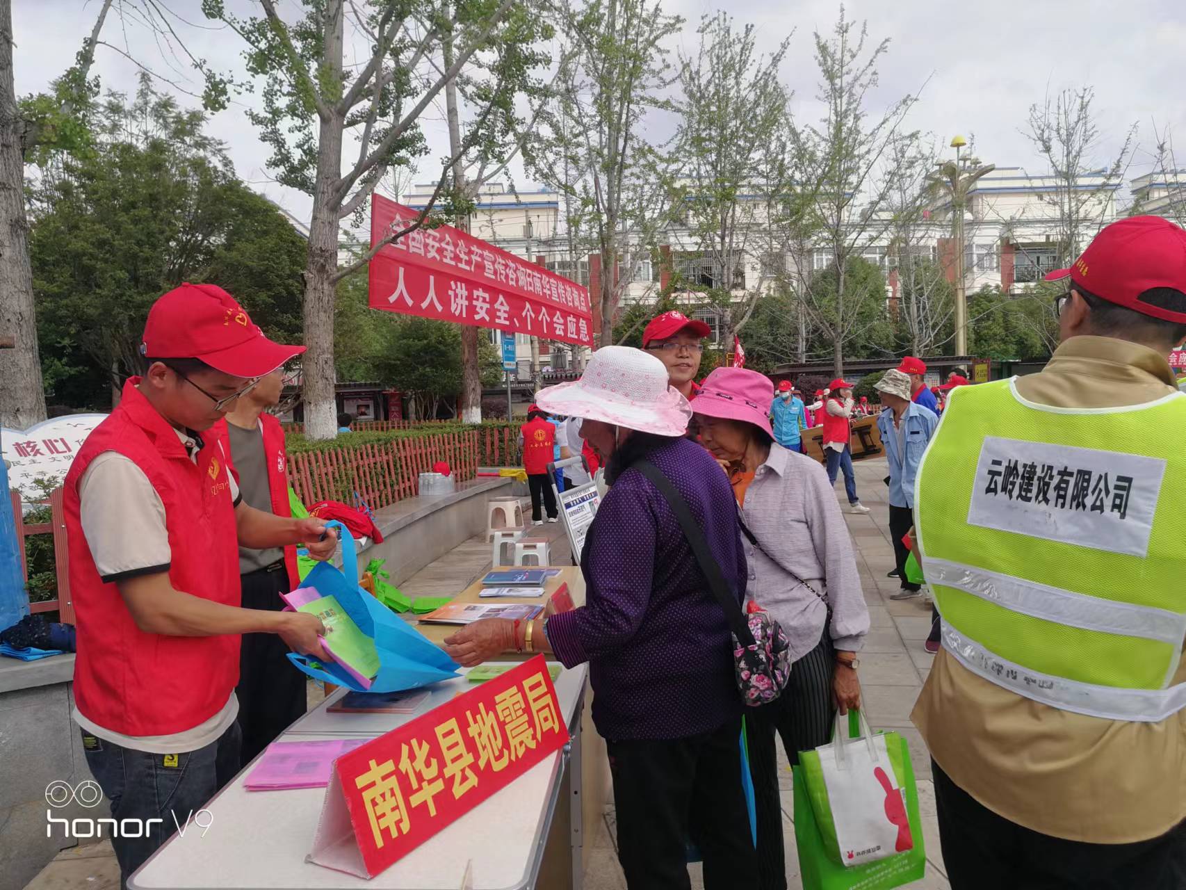 6月16日,南华县地震局派出2名干部职工,参加了由县安委办牵头组织的以“人人讲安全、个个会应急”为主题的安全生产月集中宣传咨询活动。