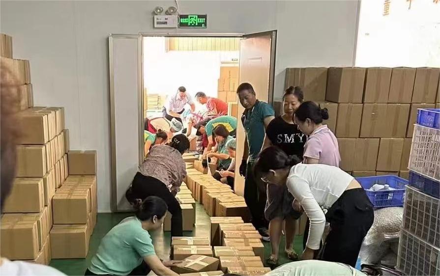 “货太多,叉车都用上了。这个天气热的不行,但却丝毫不影响我们干活的进度。奋战一个月,今天大货车走2车。”正在备货的一名工作人员说。