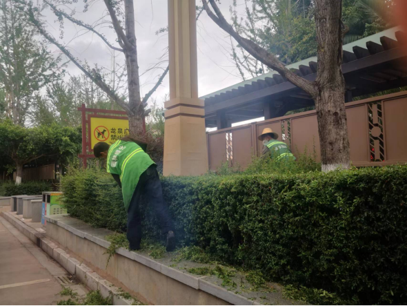 二是加强苗木修剪整形工作。夏季植物生长较快,根据不同植物的生长习性,绿化养护工作人员对主要道路、公园广场内的绿化苗木展开整形修剪,及时剪除超长顶端树枝,清除树木枯枝、下垂枝等,确保生长态势良好。