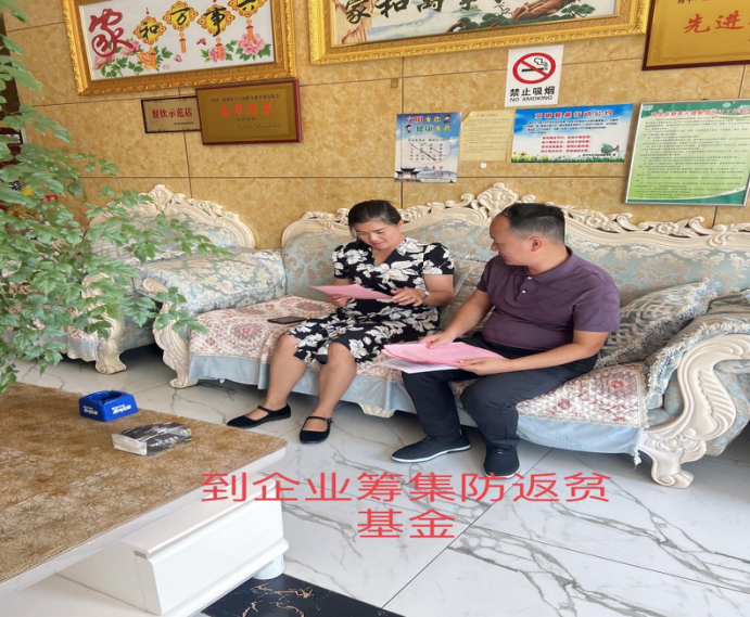 9月8日,县乡村振兴局党组书记、副局长到企业筹集防贫基金。