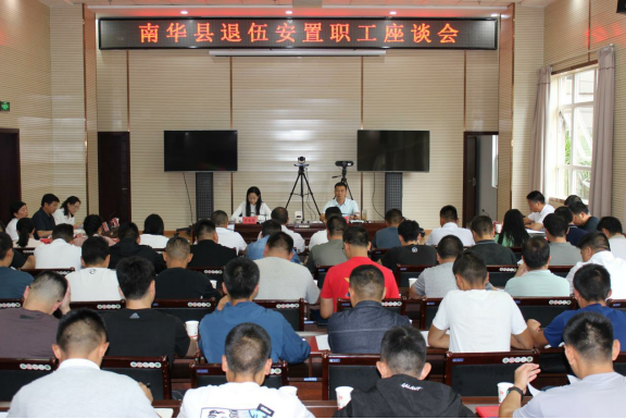 (六)召开一次建军节座谈会。组织召开南华县军休军转干部座谈会,县、乡(镇)、村(社区)三级组织开展重温军人誓词、召开座谈会等活动,与军休军转干部、退役军人共商发展大计,共享改革发展成果,形成全社会尊崇军人、关爱军人的良好氛围。