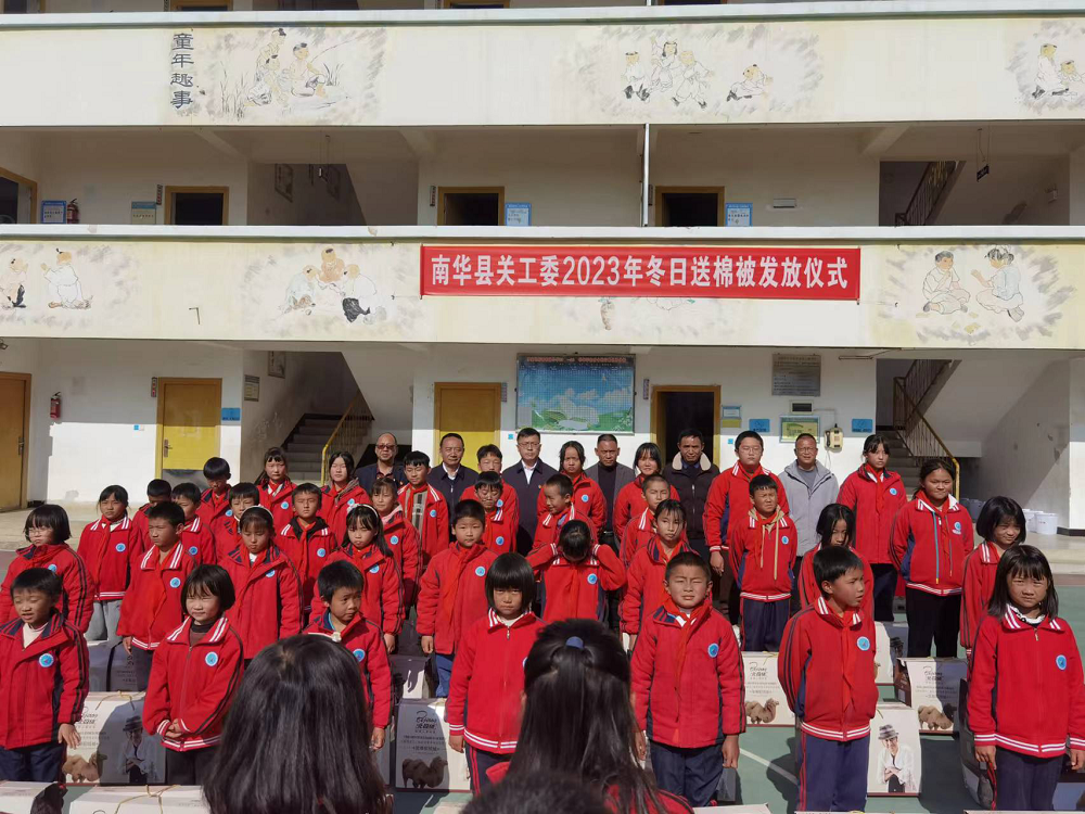 11月20日,南华县委关心下一代工作委员会在龙川镇罗家屯小学开展主题为“寒冬送棉被,真情暖人心”的2023年冬日棉被发放活动。