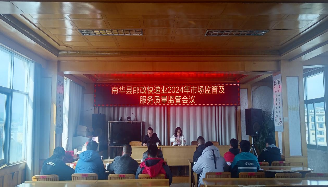 近日,南华县召开2024年邮政快递业市场监管暨行业安全生产、服务质量监管工作会议。会议传达学习了2024年全州邮政管理工作会议精神,回顾2023年全县邮政市场监管工作,分析行业形势,安排部署2024年重点工作任务。